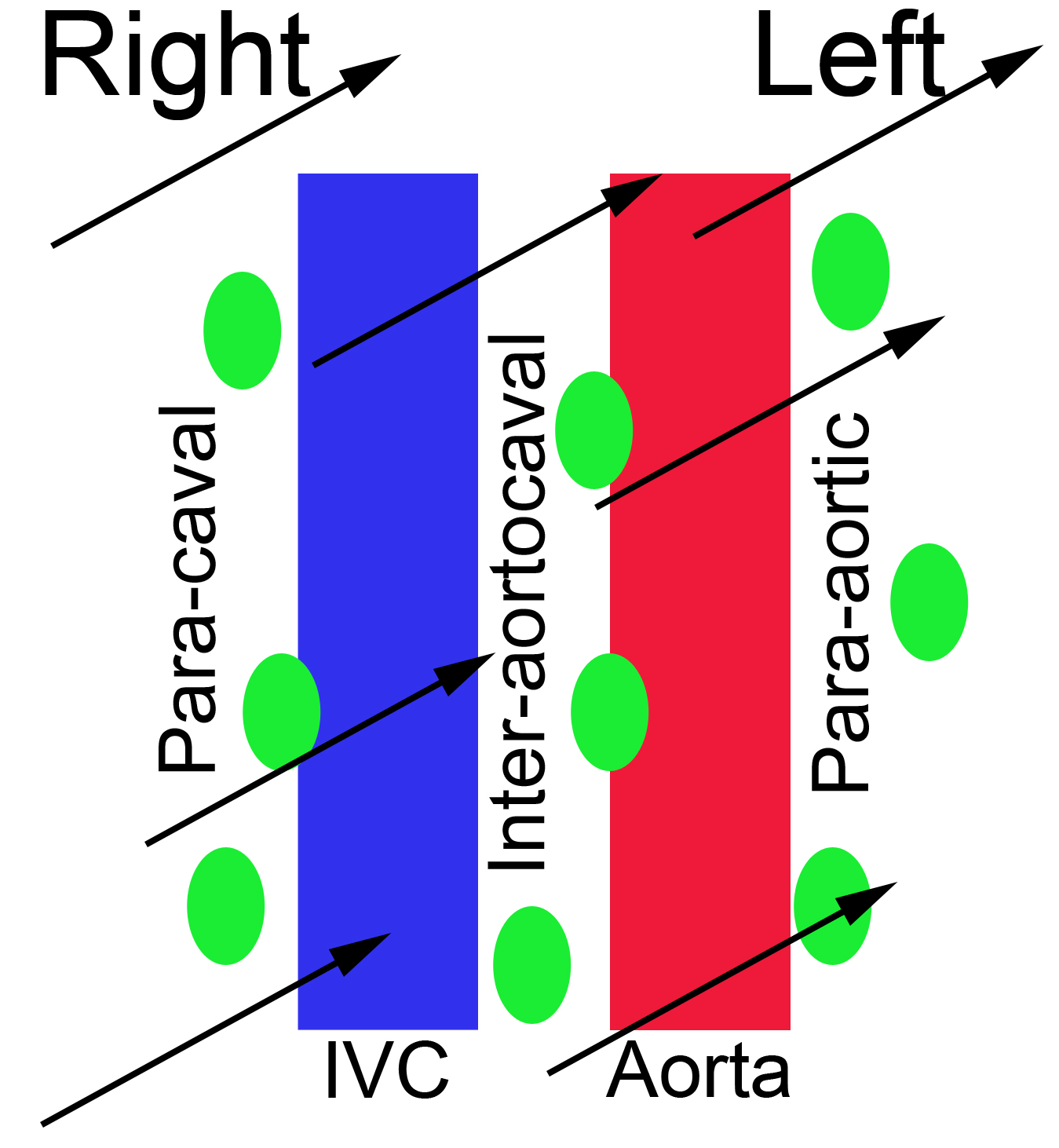 Right to left drainage pattern of retroperitoneal lymph nodes